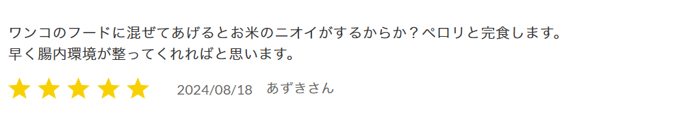 普段のお気に入りのドッグフードにふりかけるもよし、独自のレシピで作るワンチャン用のごはんに混ぜ込むもよし、取り扱いもしやすいのが麹パウダーの魅力です。